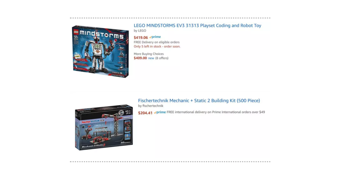 在价格上,乐高的教具相对慧鱼的来说还是偏贵一些。例如乐高目前最新的Mindstorm EV3,在亚马逊的售价约为420美金,而慧鱼的Mechanic建筑套件只需要205美金左右。